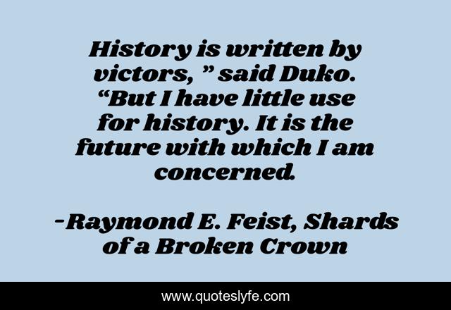 "Raymond E. Feist, Shards of a Broken Crown Quotes." Quoteslyfe.com, 2025. Sat. 06 Dec. 2025. <https://www.quoteslyfe.com/quote/History-is-written-by-victors-said-Duko-70529>.