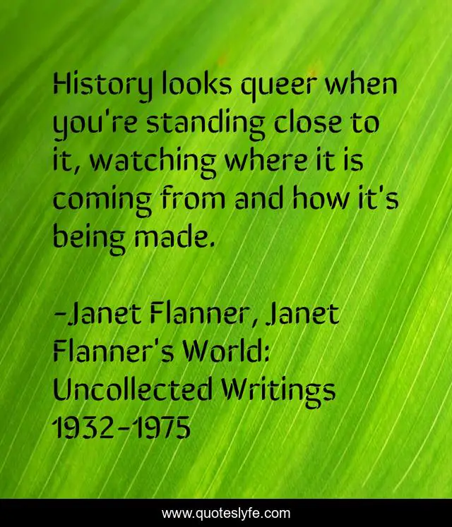 "Janet Flanner, Janet Flanner's World: Uncollected Writings 1932-1975 Quotes." Quoteslyfe.com, 2025. Fri. 05 Dec. 2025. <https://www.quoteslyfe.com/quote/History-looks-queer-when-you-re-standing-70375>.