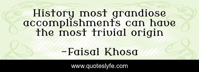 This page presents the quote "History most grandiose accomplishments can have the most trivial origin". Author of this quote is Faisal Khosa. .