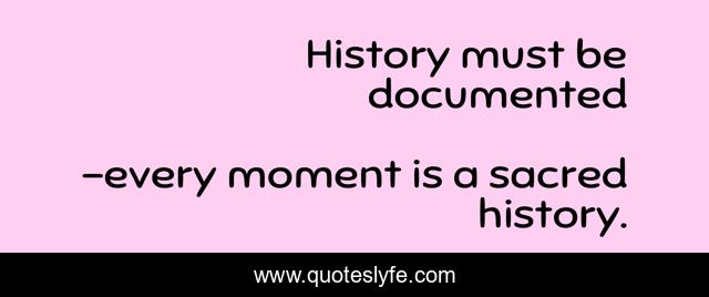 "every moment is a sacred history. Quotes." Quoteslyfe.com, 2025. Fri. 05 Dec. 2025. <https://www.quoteslyfe.com/quote/History-must-be-documented-70905>.