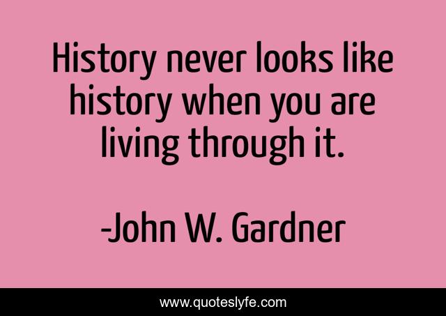 This page presents the quote "History never looks like history when you are living through it.". Author of this quote is John W. Gardner. This quote is about living, through,.