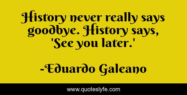 This page presents the quote "History never really says goodbye. History says, 'See you later.'". Author of this quote is Eduardo Galeano. This quote is about see, goodbye,.