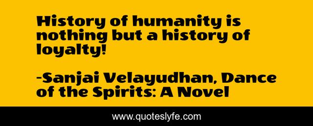 This page presents the quote "History of humanity is nothing but a history of loyalty!". Author of this quote is Sanjai Velayudhan, Dance of the Spirits: A Novel. This quote is about kerala, history, india, humanity, history-of-mankind,.