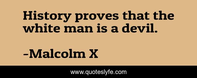 This page presents the quote "History proves that the white man is a devil.". Author of this quote is Malcolm X. This quote is about white, devil, man,.