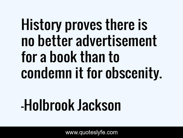 This page presents the quote "History proves there is no better advertisement for a book than to condemn it for obscenity.". Author of this quote is Holbrook Jackson. This quote is about books, censorship,.