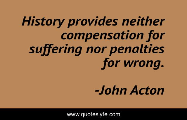 This page presents the quote "History provides neither compensation for suffering nor penalties for wrong.". Author of this quote is John Acton. This quote is about suffering, compensation,.