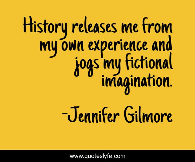 This page presents the quote "History releases me from my own experience and jogs my fictional imagination.". Author of this quote is Jennifer Gilmore. This quote is about me, experience, history,.
