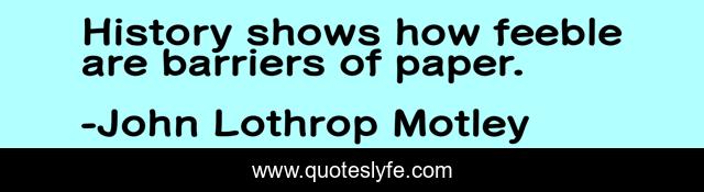 This page presents the quote "History shows how feeble are barriers of paper.". Author of this quote is John Lothrop Motley. This quote is about barriers, paper,.