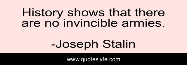 This page presents the quote "History shows that there are no invincible armies.". Author of this quote is Joseph Stalin. This quote is about invincible, armies, shows,.