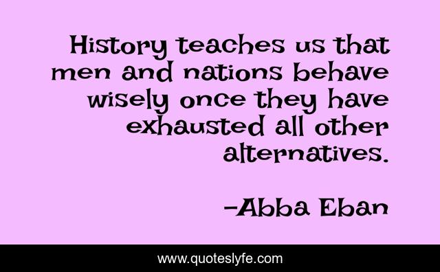 This page presents the quote "History teaches us that men and nations behave wisely once they have exhausted all other alternatives.". Author of this quote is Abba Eban. This quote is about historians, history,.