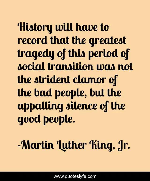History will have to record that the greatest tragedy of this period of social transition was not the strident clamor of the bad people, but the appalling silence of the good people.