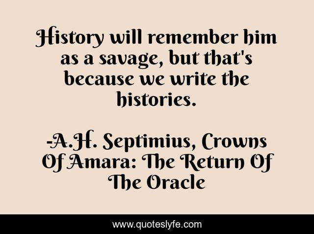 "A.H. Septimius, Crowns Of Amara: The Return Of The Oracle Quotes." Quoteslyfe.com, 2025. Sat. 06 Dec. 2025. <https://www.quoteslyfe.com/quote/History-will-remember-him-as-a-savage-70507>.