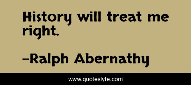 This page presents the quote "History will treat me right.". Author of this quote is Ralph Abernathy. This quote is about me, right, treat,.