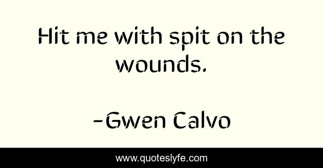 This page presents the quote "Hit me with spit on the wounds.". Author of this quote is Gwen Calvo. .
