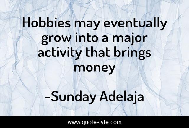 This page presents the quote "Hobbies may eventually grow into a major activity that brings money". Author of this quote is Sunday Adelaja. This quote is about life, money, calling, growth, purpose, truth, activity, hobby,.