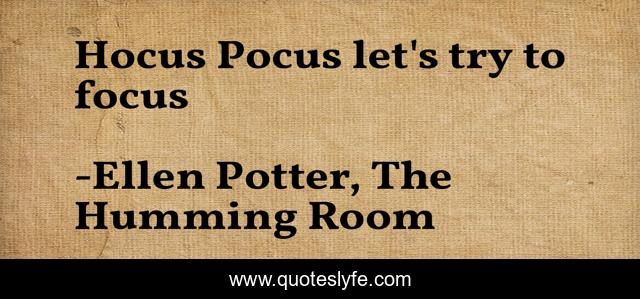 "Ellen Potter, The Humming Room Quotes." Quoteslyfe.com, 2025. Fri. 05 Dec. 2025. <https://www.quoteslyfe.com/quote/Hocus-Pocus-let-s-try-to-focus-149635>.