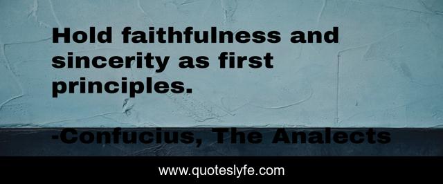 This page presents the quote "Hold faithfulness and sincerity as first principles.". Author of this quote is Confucius, The Analects. This quote is about faithfulness, loyalty, sincerity,.