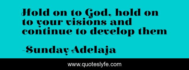 This page presents the quote "Hold on to God, hold on to your visions and continue to develop them". Author of this quote is Sunday Adelaja. This quote is about faithful, persistence, creative,.