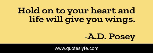 This page presents the quote "Hold on to your heart and life will give you wings.". Author of this quote is A.D. Posey. This quote is about butterfly, fly, life, storytelling, heart, storytellers, writing, writers, ad-posey,.
