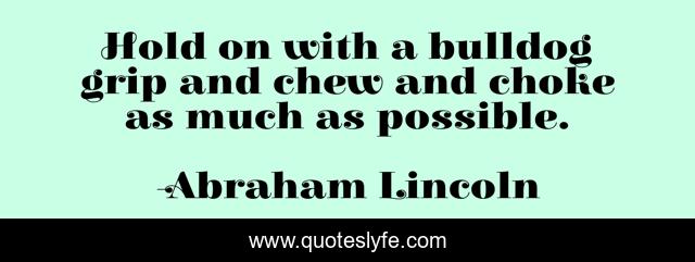This page presents the quote "Hold on with a bulldog grip and chew and choke as much as possible.". Author of this quote is Abraham Lincoln. This quote is about , pressure, diamonds,.