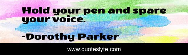 This page presents the quote "Hold your pen and spare your voice.". Author of this quote is Dorothy Parker. This quote is about literature, silence, writing,.