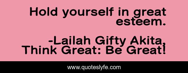 "Lailah Gifty Akita, Think Great: Be Great! Quotes." Quoteslyfe.com, 2025. Fri. 05 Dec. 2025. <https://www.quoteslyfe.com/quote/Hold-yourself-in-great-esteem-142759>.