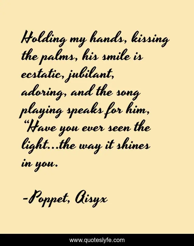 "Poppet, Aisyx Quotes." Quoteslyfe.com, 2025. Tue. 09 Dec. 2025. <https://www.quoteslyfe.com/quote/Holding-my-hands-kissing-the-palms-his-132578>.