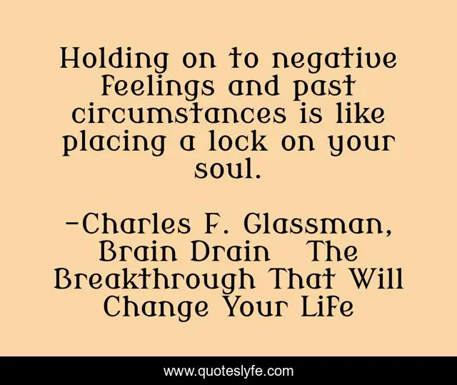"Charles F. Glassman, Brain Drain The Breakthrough That Will Change Your Life Quotes." Quoteslyfe.com, 2025. Sun. 07 Dec. 2025. <https://www.quoteslyfe.com/quote/Holding-on-to-negative-feelings-and-past-109784>.