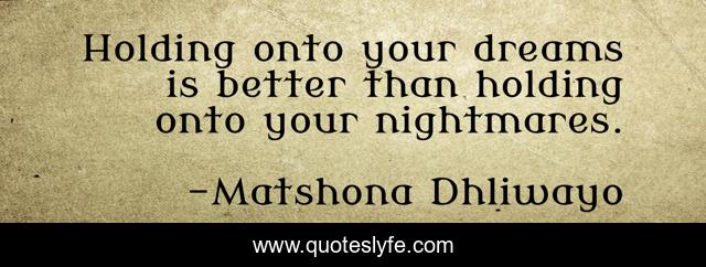 "Matshona Dhliwayo Quotes." Quoteslyfe.com, 2025. Sat. 06 Dec. 2025. <https://www.quoteslyfe.com/quote/Holding-onto-your-dreams-is-better-than-83673>.
