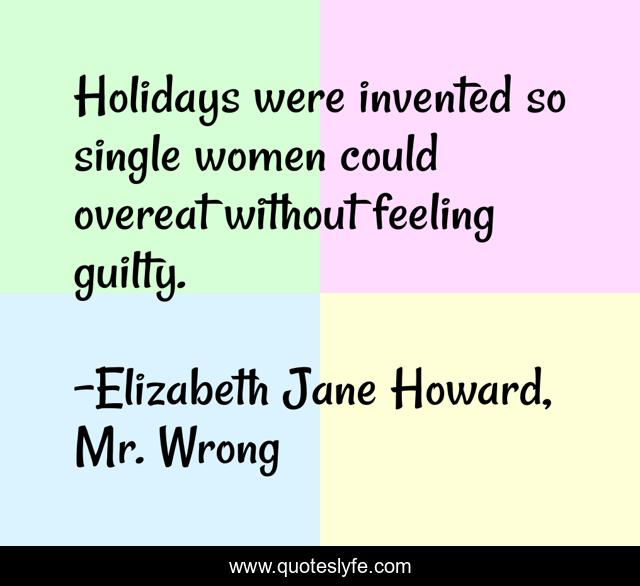 This page presents the quote "Holidays were invented so single women could overeat without feeling guilty.". Author of this quote is Elizabeth Jane Howard, Mr. Wrong. This quote is about humorous, dieting,.