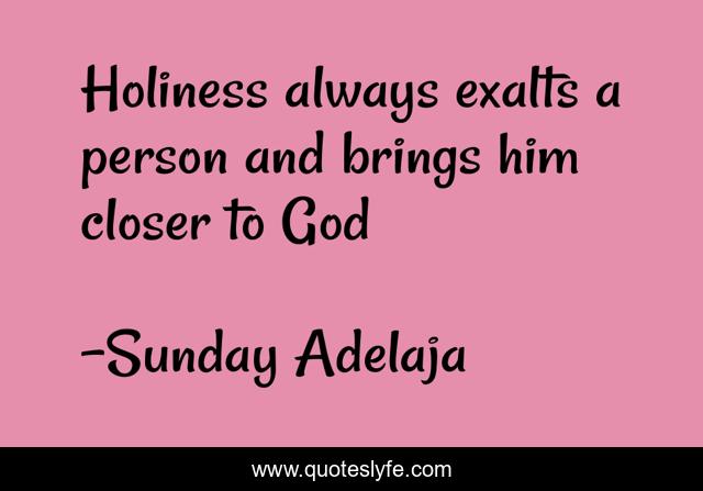 This page presents the quote "Holiness always exalts a person and brings him closer to God". Author of this quote is Sunday Adelaja. This quote is about closer, prosperity, reality-of-life, money, wealth, holiness, god, golden-truth, riches,.