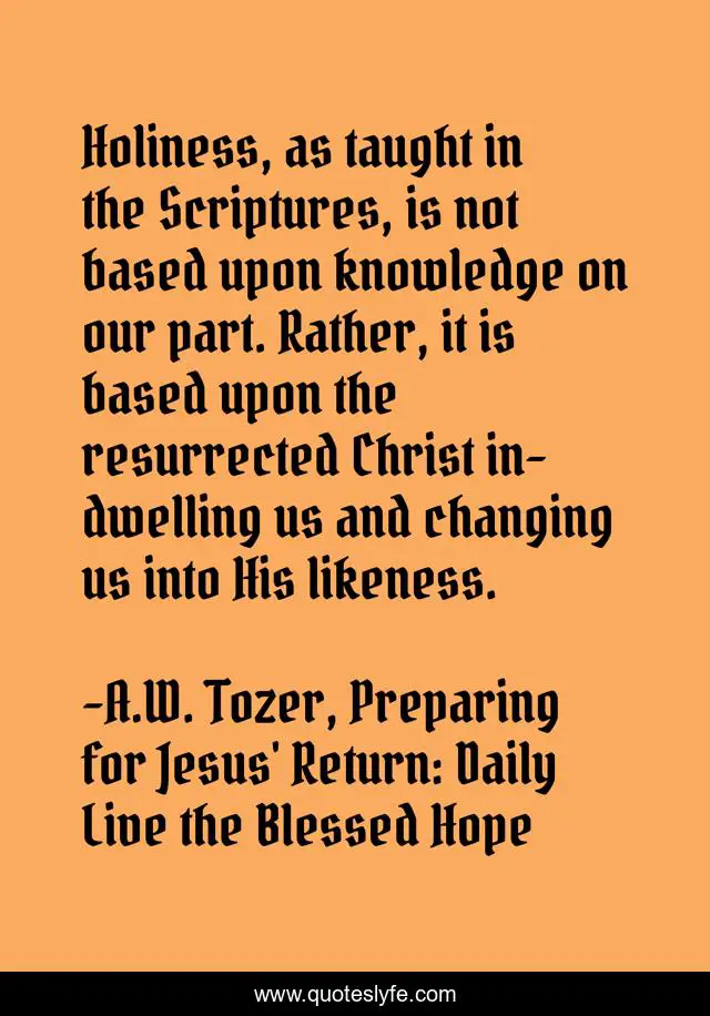 "A.W. Tozer, Preparing for Jesus' Return: Daily Live the Blessed Hope Quotes." Quoteslyfe.com, 2025. Fri. 05 Dec. 2025. <https://www.quoteslyfe.com/quote/Holiness-as-taught-in-the-Scriptures-is-249399>.