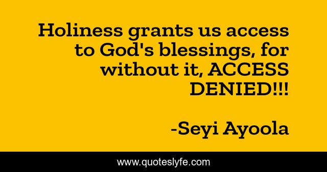 This page presents the quote "Holiness grants us access to God's blessings, for without it, ACCESS DENIED!!!". Author of this quote is Seyi Ayoola. This quote is about access, holiness-blessings, prayer,.