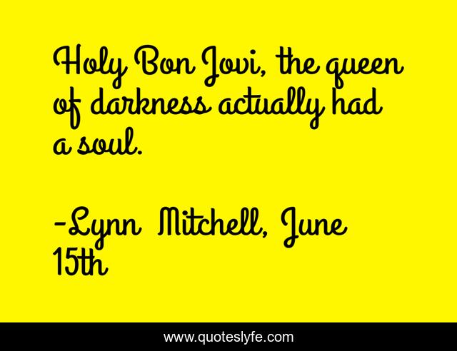 "Lynn Mitchell, June 15th Quotes." Quoteslyfe.com, 2025. Sat. 06 Dec. 2025. <https://www.quoteslyfe.com/quote/Holy-Bon-Jovi-the-queen-of-darkness-18652>.