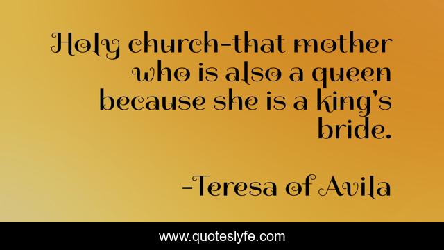 This page presents the quote "Holy church-that mother who is also a queen because she is a king's bride.". Author of this quote is Teresa of Avila. .