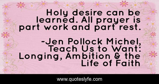 "Jen Pollock Michel, Teach Us to Want: Longing, Ambition & the Life of Faith Quotes." Quoteslyfe.com, 2025. Fri. 05 Dec. 2025. <https://www.quoteslyfe.com/quote/Holy-desire-can-be-learned-All-prayer-205888>.