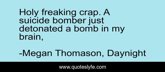 This page presents the quote "Holy freaking crap. A suicide bomber just detonated a bomb in my brain, ". Author of this quote is Megan Thomason, Daynight. This quote is about brain, bomb,.