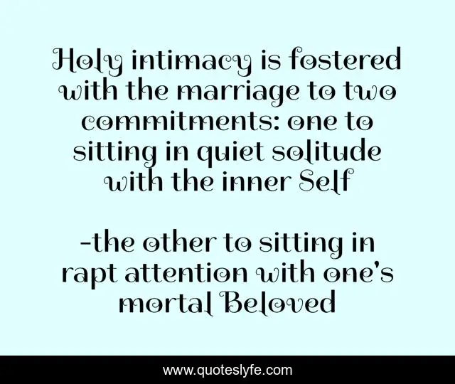 "the other to sitting in rapt attention with one's mortal Beloved Quotes." Quoteslyfe.com, 2025. Sat. 06 Dec. 2025. <https://www.quoteslyfe.com/quote/Holy-intimacy-is-fostered-with-the-marriage-117755>.