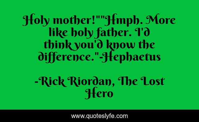 This page presents the quote "Holy mother!""Hmph. More like holy father. I'd think you'd know the difference."-Hephaetus". Author of this quote is Rick Riordan, The Lost Hero. This quote is about humor, greece,.