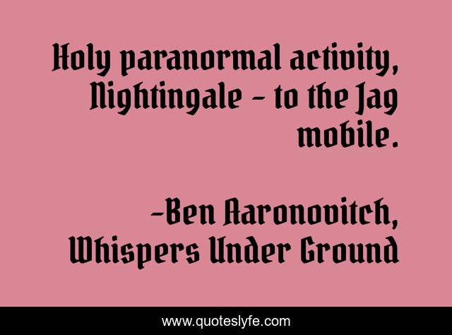 This page presents the quote "Holy paranormal activity, Nightingale - to the Jag mobile.". Author of this quote is Ben Aaronovitch, Whispers Under Ground. .