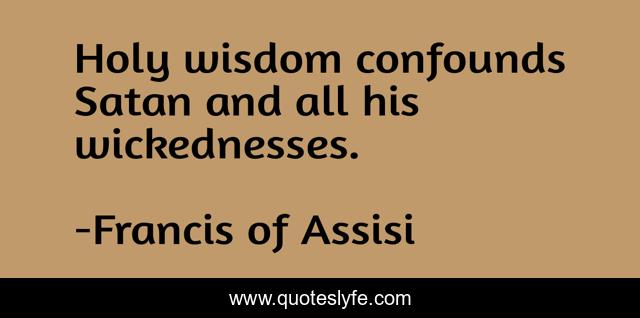 This page presents the quote "Holy wisdom confounds Satan and all his wickednesses.". Author of this quote is Francis of Assisi. This quote is about his, satan, holy,.