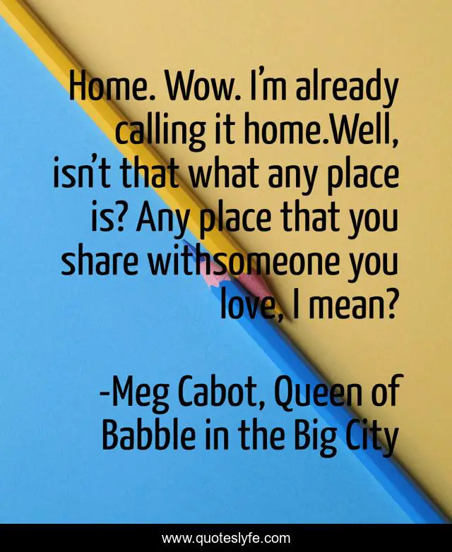 This page presents the quote "Home. Wow. I’m already calling it home.Well, isn’t that what any place is? Any place that you share withsomeone you love, I mean?". Author of this quote is Meg Cabot, Queen of Babble in the Big City. .