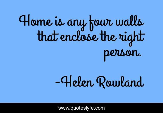 This page presents the quote "Home is any four walls that enclose the right person.". Author of this quote is Helen Rowland. This quote is about person, walls, right person,.