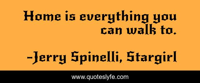 "Jerry Spinelli, Stargirl Quotes." Quoteslyfe.com, 2025. Sat. 06 Dec. 2025. <https://www.quoteslyfe.com/quote/Home-is-everything-you-can-walk-to-182435>.
