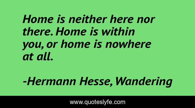 "Hermann Hesse, Wandering Quotes." Quoteslyfe.com, 2025. Sun. 07 Dec. 2025. <https://www.quoteslyfe.com/quote/Home-is-neither-here-nor-there-Home-141804>.