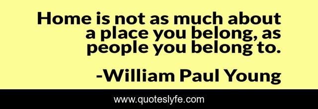 This page presents the quote "Home is not as much about a place you belong, as people you belong to.". Author of this quote is William Paul Young. .
