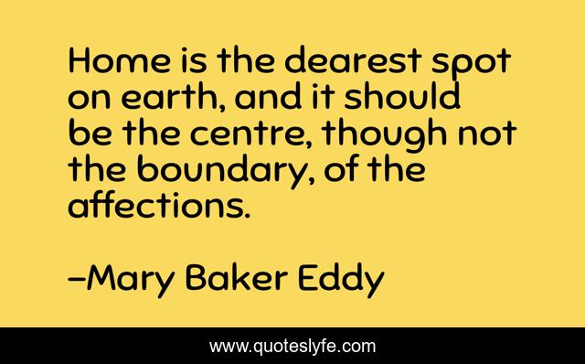This page presents the quote "Home is the dearest spot on earth, and it should be the centre, though not the boundary, of the affections.". Author of this quote is Mary Baker Eddy. This quote is about better-life-empathy, kindness, inspirational-living,.