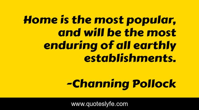 This page presents the quote "Home is the most popular, and will be the most enduring of all earthly establishments.". Author of this quote is Channing Pollock. This quote is about popular, enduring,.