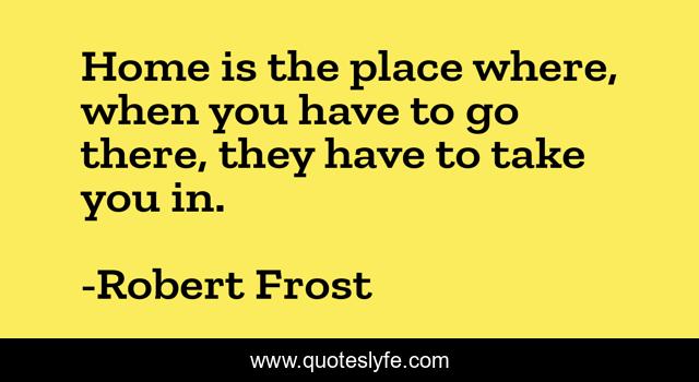 This page presents the quote "Home is the place where, when you have to go there, they have to take you in.". Author of this quote is Robert Frost. This quote is about home, homecoming, inspirational, enthusiasm,.