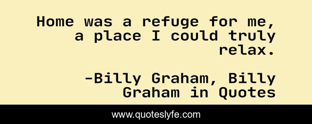 This page presents the quote "Home was a refuge for me, a place I could truly relax.". Author of this quote is Billy Graham, Billy Graham in Quotes. This quote is about home, billy-graham,.